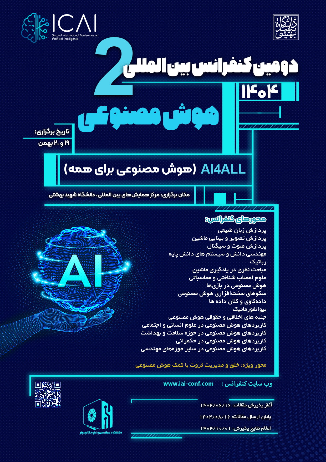 دریافت مقالات کنفرانس آغاز شده است و تا 16 آبان ماه 1404 ادامه دارد. از علاقمندان دعوت می شود تا مقالات خود را در حوزه های مختلف ارسال نمایند.